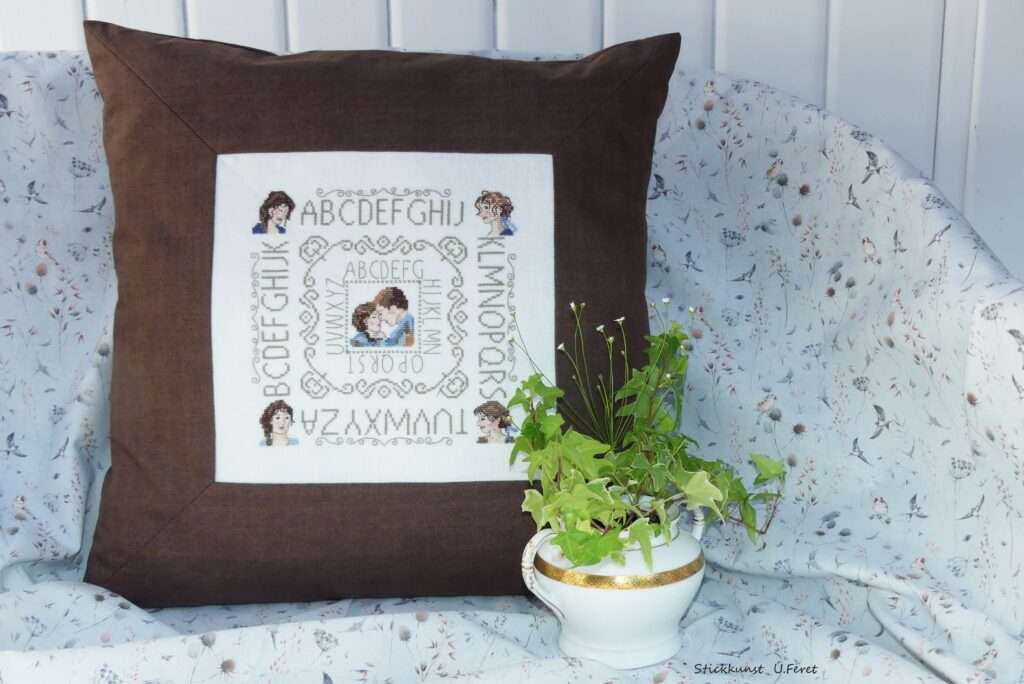 Dieses romantische Kissen ist gestickt nach einer Vorlage