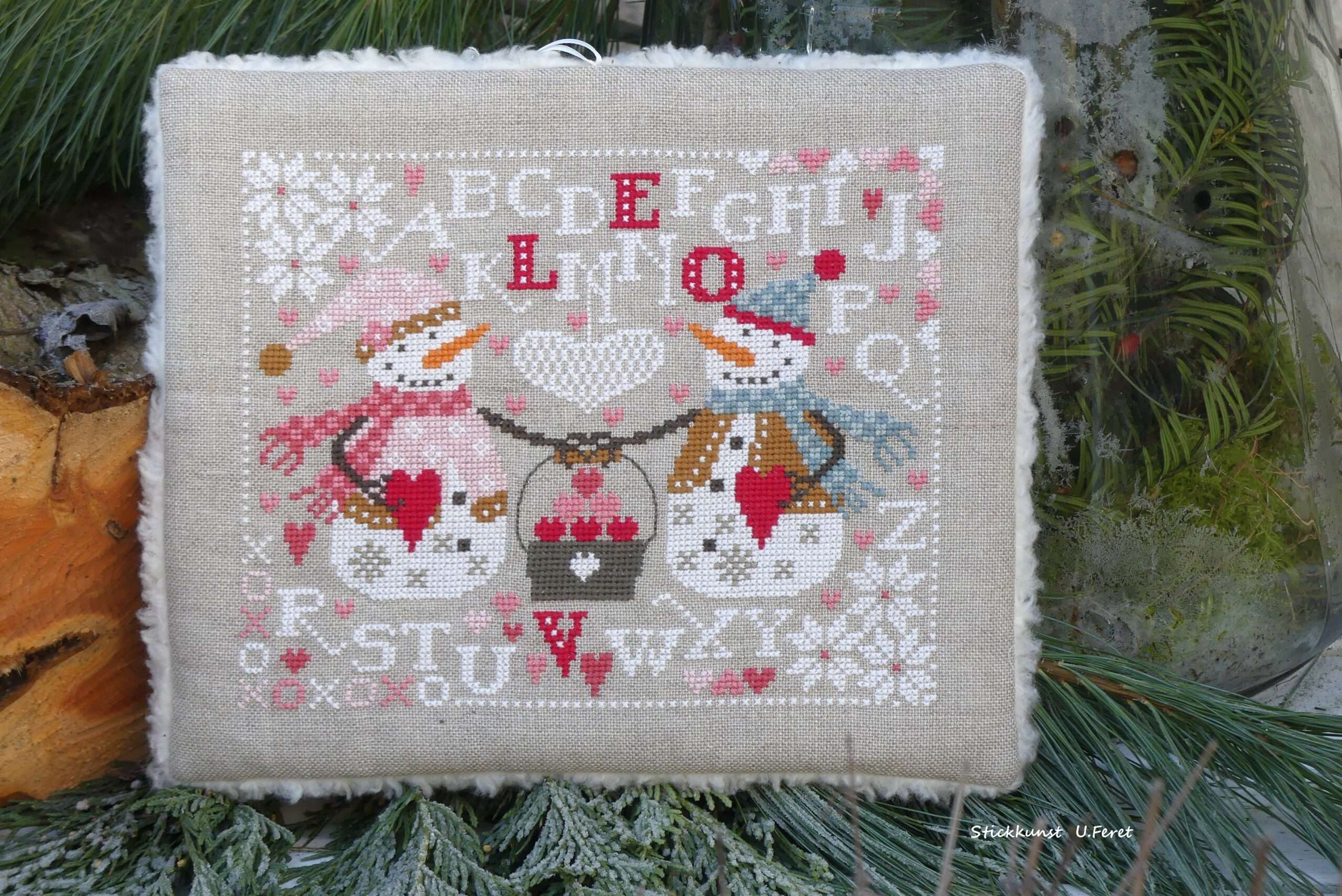 und dem gestickten passenden Motiv im Kreuzstich