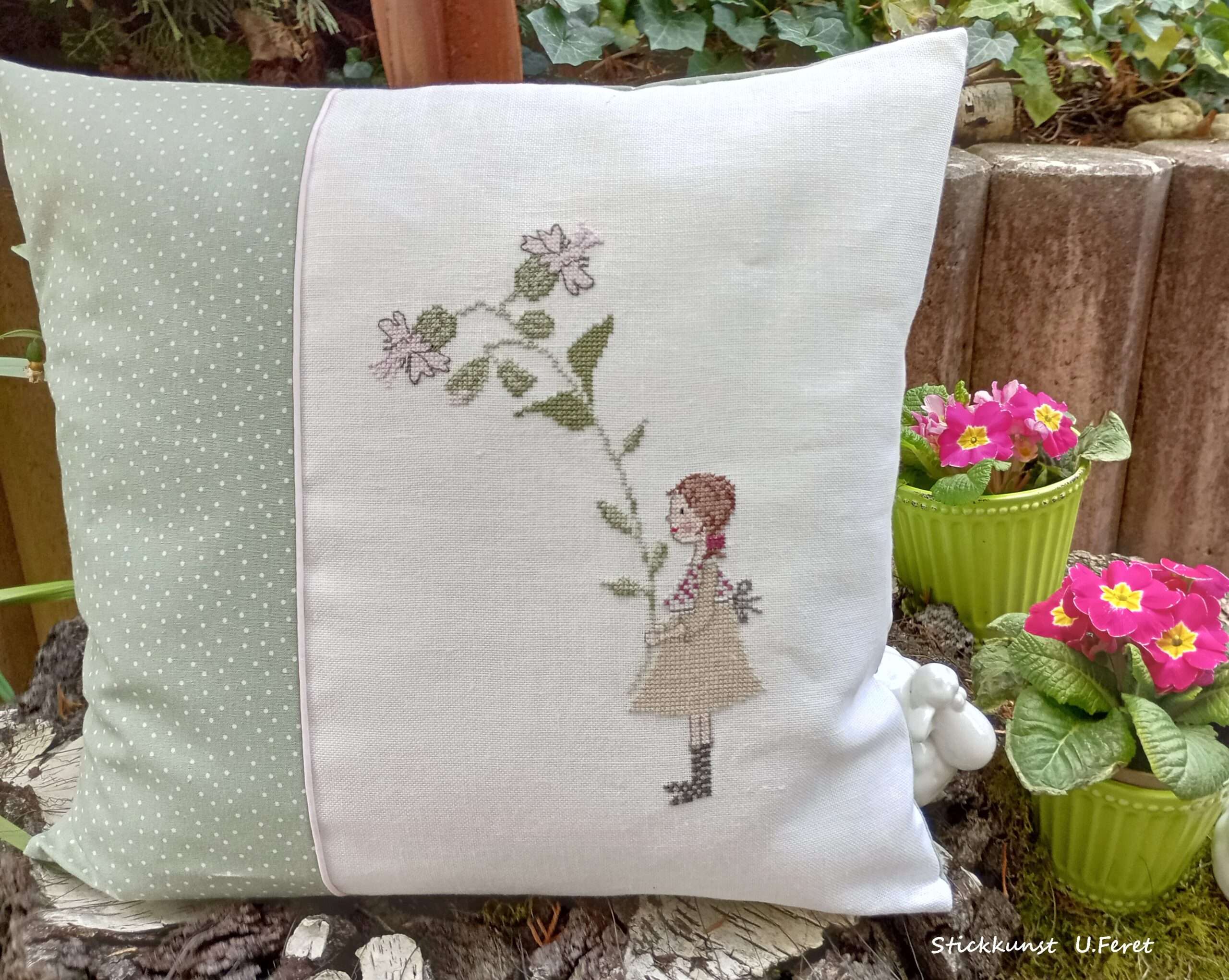 Wundervolle zarte Stickereien in den frühlingsfrischen Farben laden direkt zu nachsticken ein.
