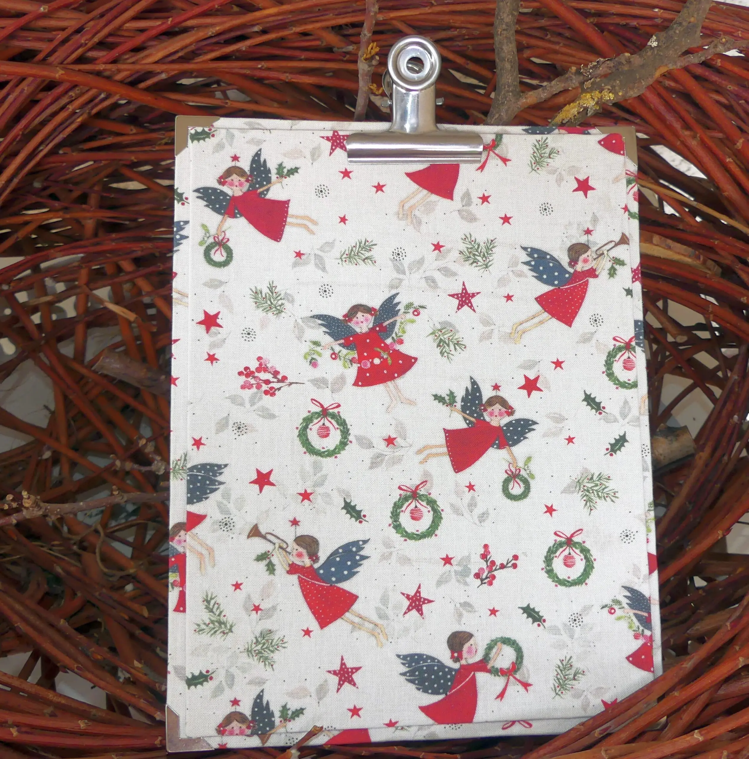 Zudem können Sie diesmal auch ein sehr hübsches Klemmbrett von „Die Schachtelidee“ mit entzückendem Stoff erstellen.