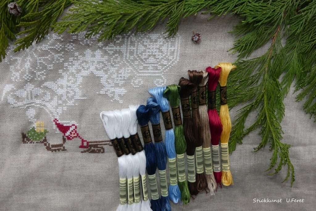 Gestickt habe ich auf Zweigart „Cashel“ 11,2 fdg. Farbe 53