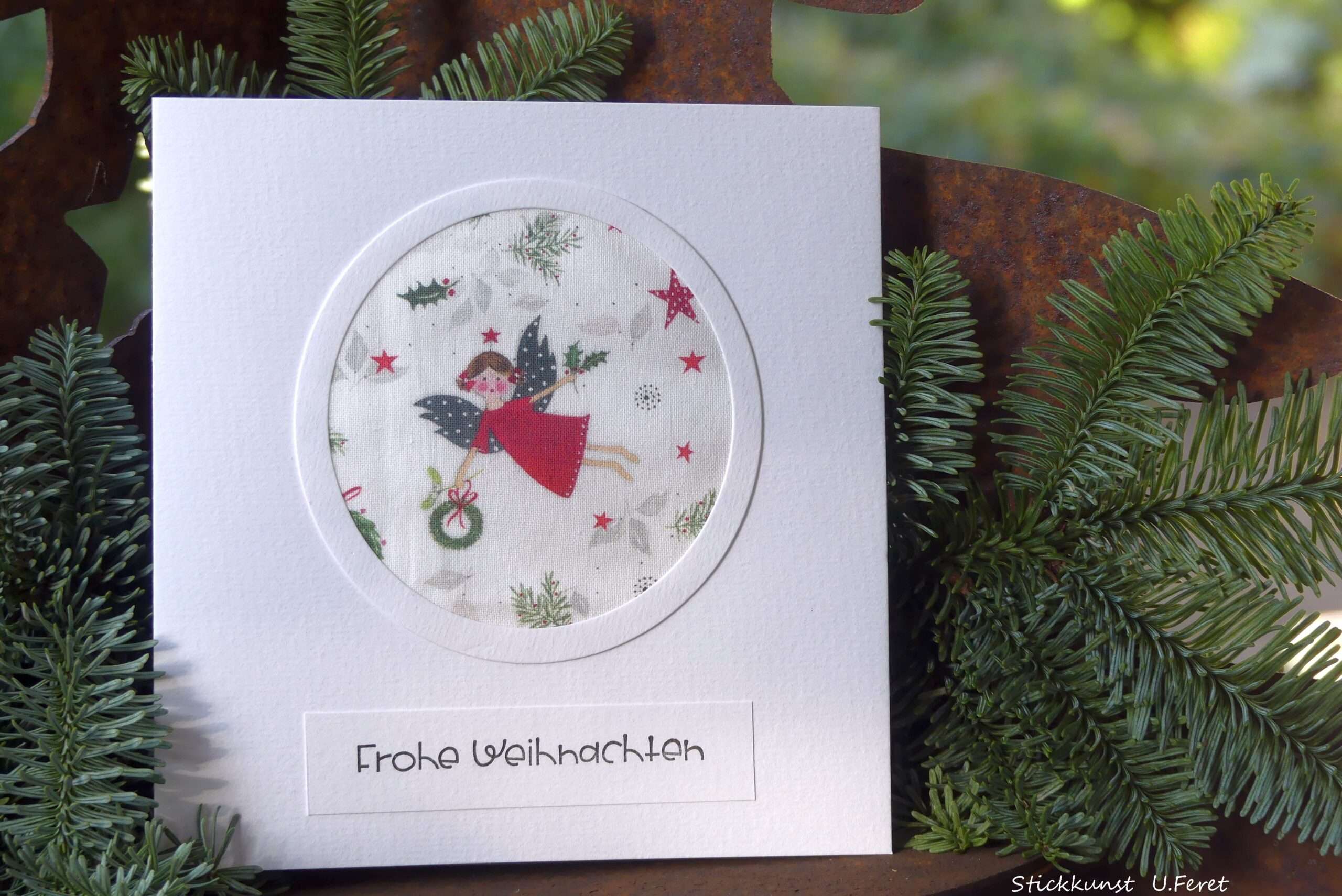 auf dem Kleid des Engels Äste in weißen Steppstichen gestickt.