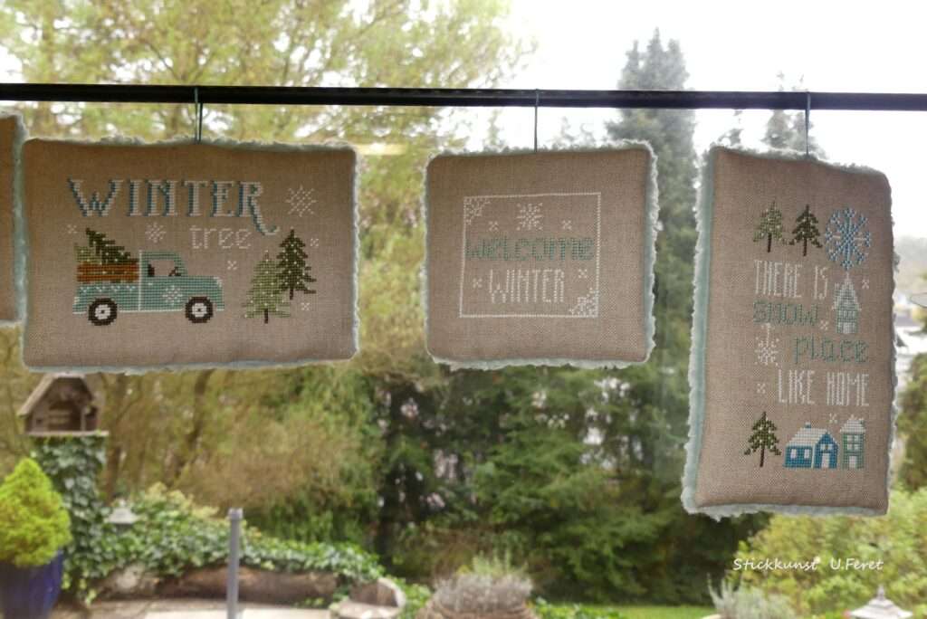 den Weihnachts-Schneemann, den ich gerade am Sticken bin.
